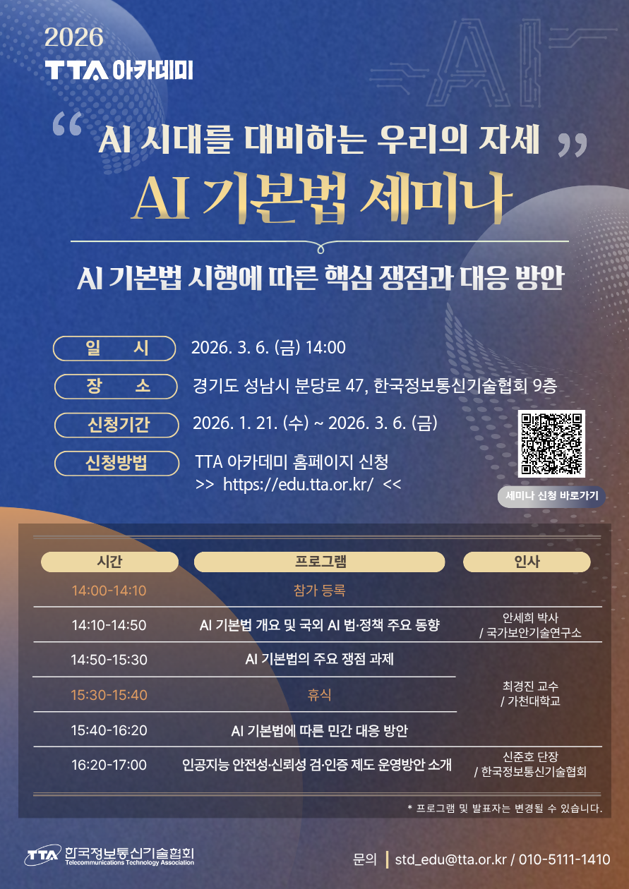 | 담당자 | TTA 아카데미 / 010-5111-1410 / std_edu@tta.or.kr |